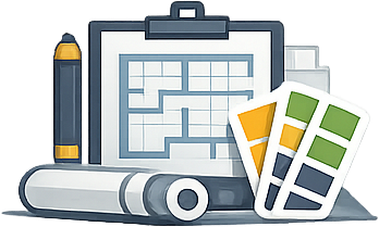 A curated collection of design inspirations, color tones, textures, and visual direction that defines the overall look and feel of your commercial project.